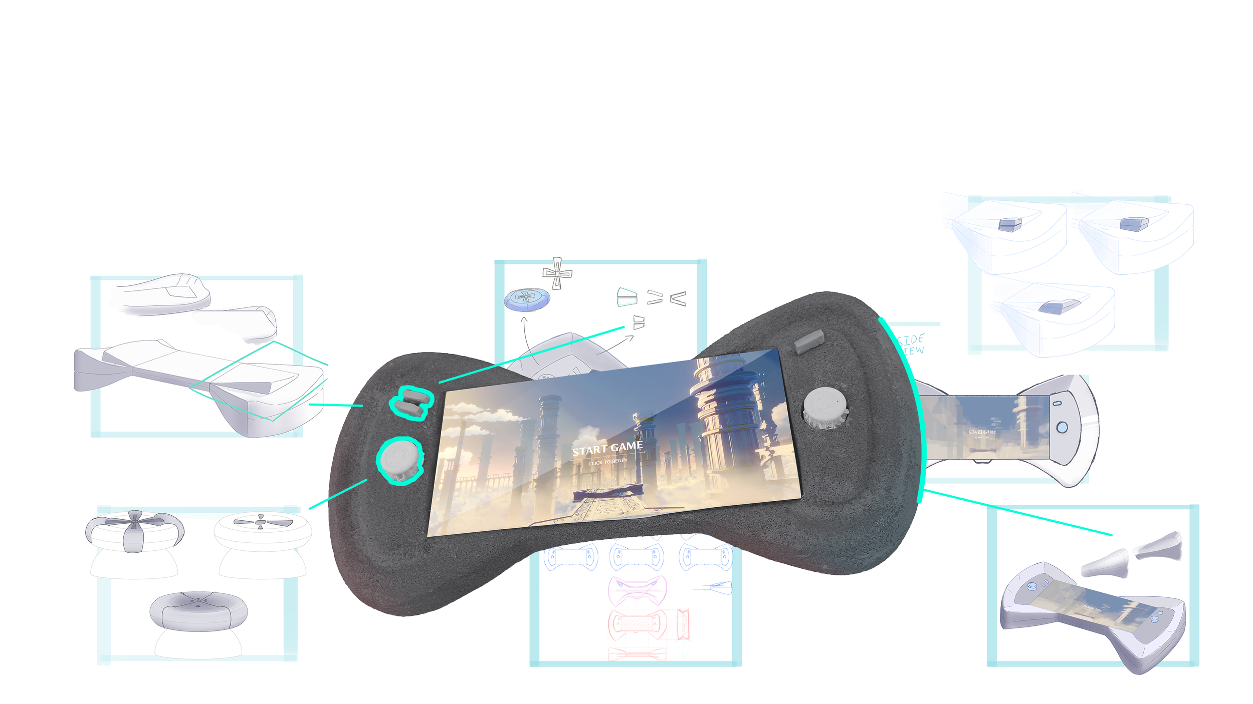 "Exploring concepts for buttons, joycons, and how the controller’s bow wings connect to the screen.